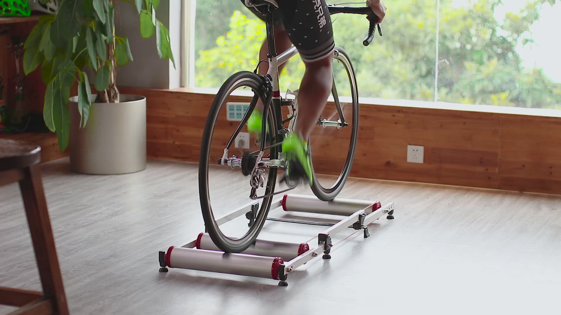 - DURABLE: High-strength and high-end aluminium alloy roller bicycle trainer, with three aluminium rollers mounted into an adjustable frame to hold bike wheels. Never worry about our quality